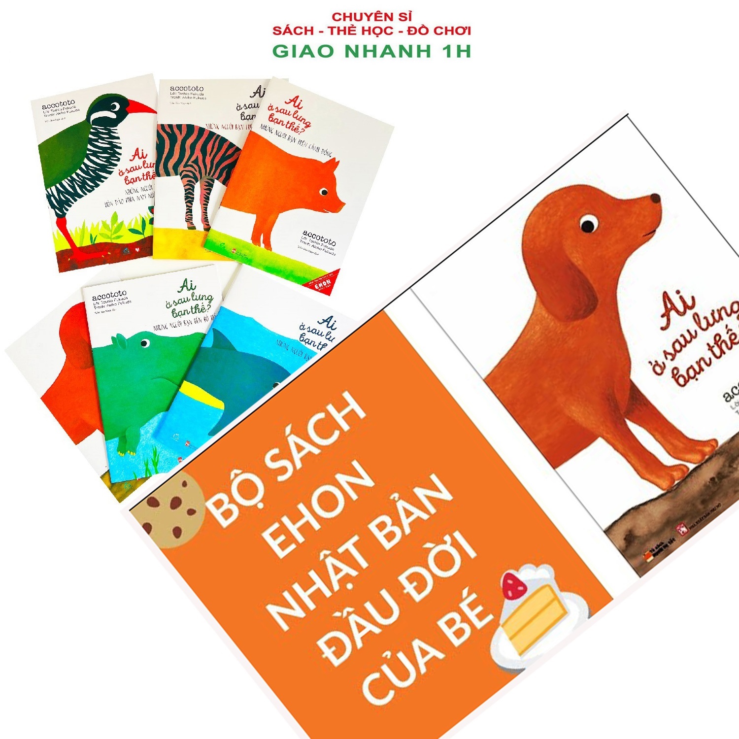 Ai ở sau lưng bạn thế? là bộ truyện Ehon Nhật Bản gồm 6 cuốn dành cho các bé từ 0 - 3 tuổi theo chủ đề về các loài động vật. Điểm thú vị của truyện chính là những bức tranh gồm một loài động vật cụ thể và một phần chi tiết về một con vật khác. Các mẹ và các bé có thể cùng đọc và cùng chơi trò chơi đoán xem bộ phận đó của con vật nào? Các bức tranh đều mở ra những câu hỏi như “Ai ở sau lưng bạn Nhím nhỉ?”, “Ai ở bên dưới bạn Cá Ngựa nhỉ?” “Ai ở bên trên bạn Hươu cao cổ nhỉ?”… chắc chắn sẽ đem lại cho các bé từ 0 - 3 tuổi những kiến thức mới, vô cùng bổ ích.